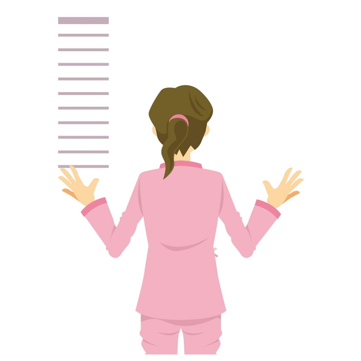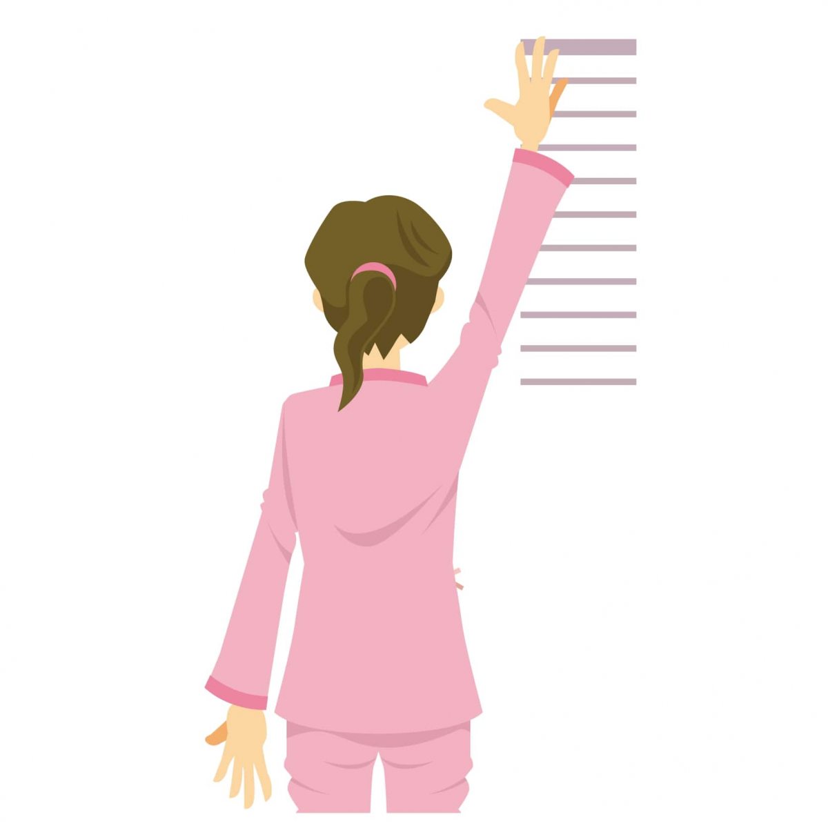 健康なほうの腕を上に伸ばして壁に目印をつける
